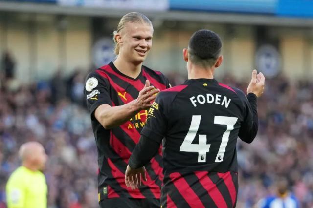 全场比赛结束,哈兰德助攻福登破门,布莱顿世界波扳平比分,最终曼城在客场1-1战平布莱顿。