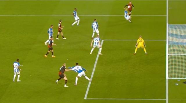 第31分钟,布莱顿三苫薰进球,但是随后被判手球在先,进球无效。