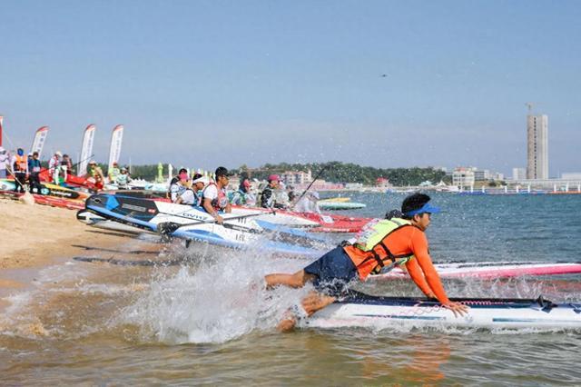 “威海的海域清澈,海浪跟我们内地的(河湖)有不一样的感觉,在大海里来一场桨板赛是一件非常刺激的事情。”武汉选手胡女士说。