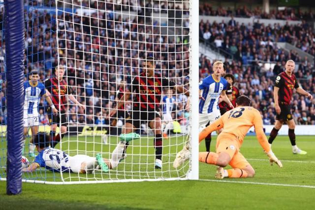 全场比赛结束,哈兰德助攻福登破门,布莱顿世界波扳平比分,最终曼城在客场1-1战平布莱顿。