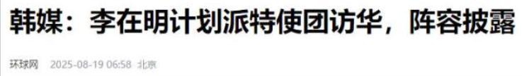 主要信息来源: 环球网2025-08-19《韩媒:李在明计划派特使团访华,阵容披露》